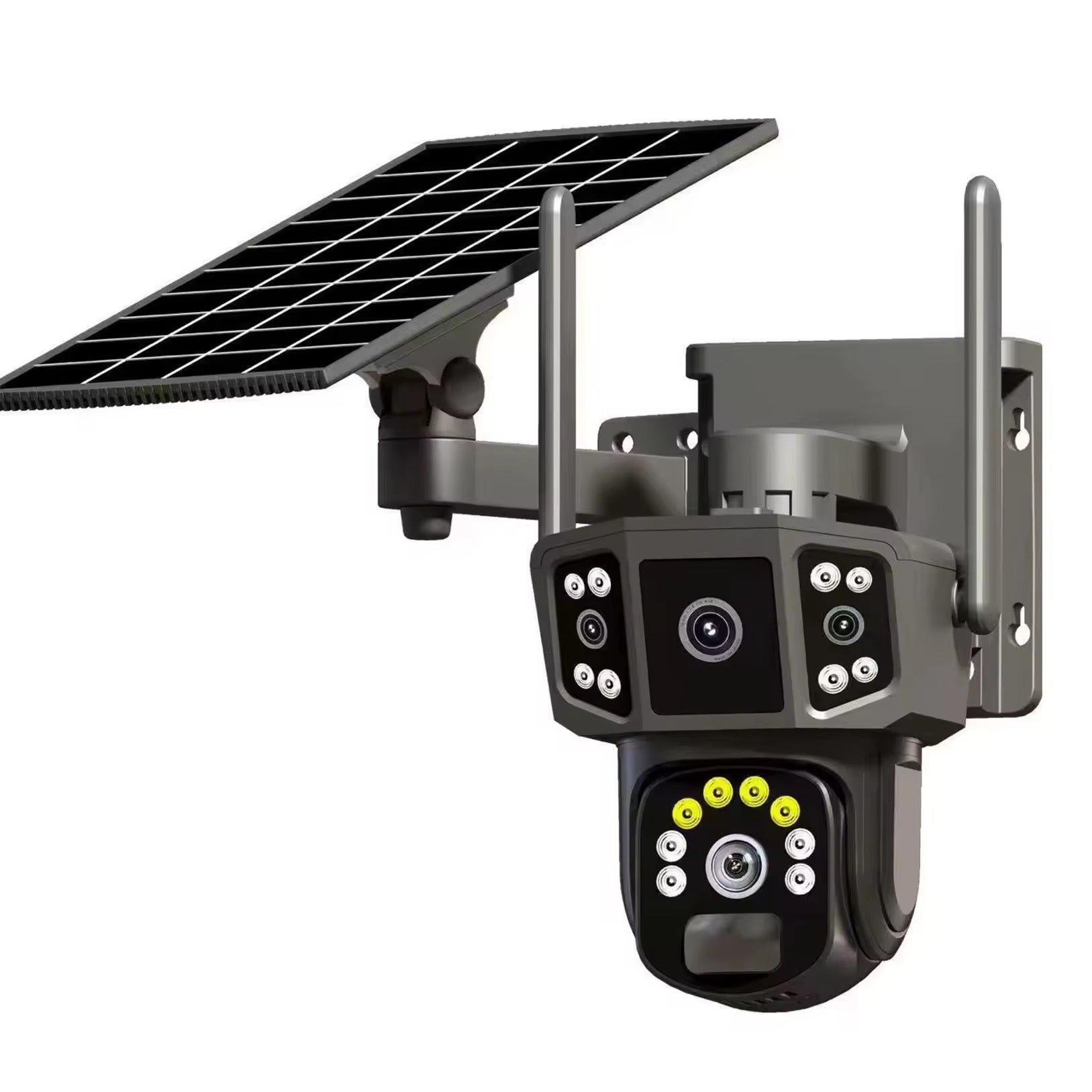 caméra de surveillance solaire à triple vision avec suivi automatique